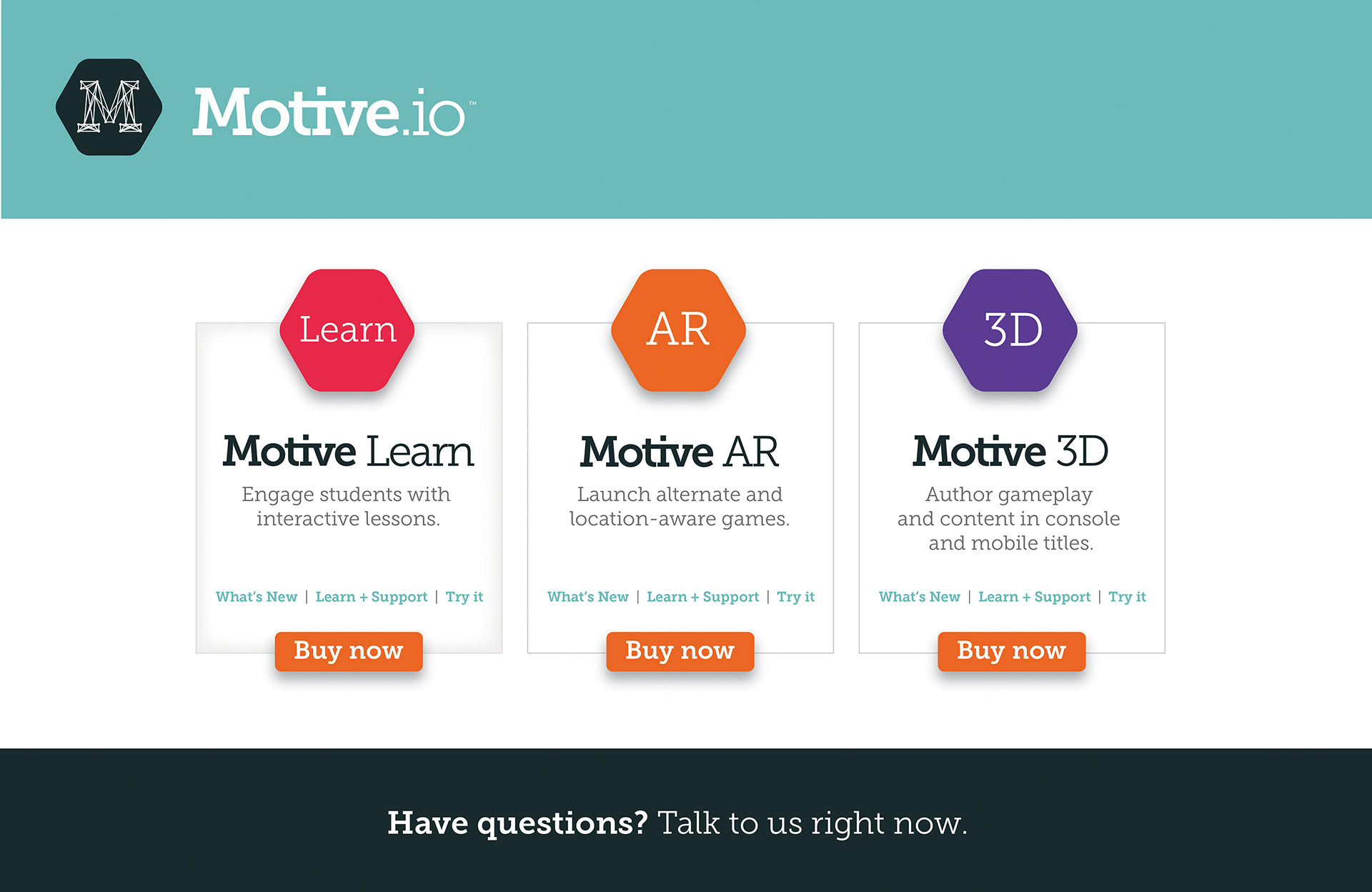 Motive.io is an online app that drives mobile game story development. I created the branding, style guide and web design for the company.